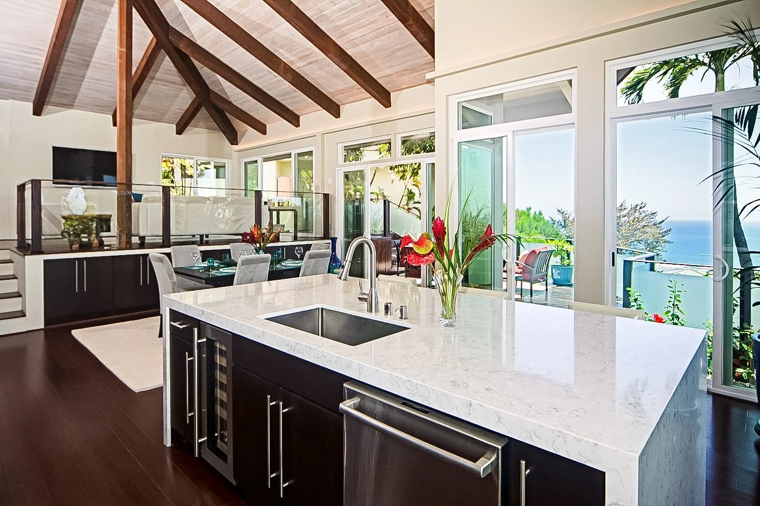 This residential renovation project breathes new life into a traditional Hawaiian home while preserving its cultural heritage. The design seamlessly integrates modern materials with the home’s existing architectural features, such as exposed wooden beams and a signature wood-slatted ceiling. By thoughtfully blending contemporary elements with the original structure, the renovation enhances comfort, functionality, and durability while maintaining the timeless charm of Hawaiian craftsmanship.